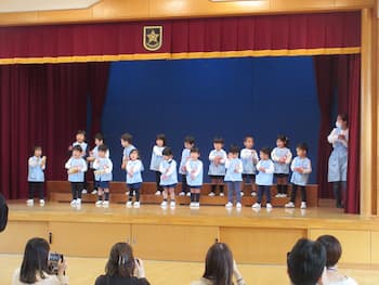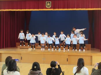 2学期の参観会、1学期の頃とは違って、話を聞いて制作をしていたり、友だちとの会話を楽しんだり・・成長した姿を保護者の方にご覧いただきました。また、初めてステージに上がって、歌や楽器の発表をしました。お家の方のたくさんの拍手、嬉しかったね!!この経験が12月のクリスマス発表会に繋がります・・・・楽しみです!!