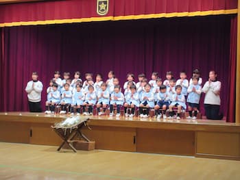 どの子も、とても年少さんらしい可愛らしい姿でしたね。お家の方の温かい見守りとたくさんの拍手が、子どもたちの成長の後押しをしてくださいました。ありがとうございました。