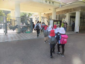 いよいよ卒園遠足当日・・・「自分で支度もできたよ~」と、張り切って登園してきた子どもたち。のんほいパークに着くと、ワクワクしながら入場門をくぐっていました。