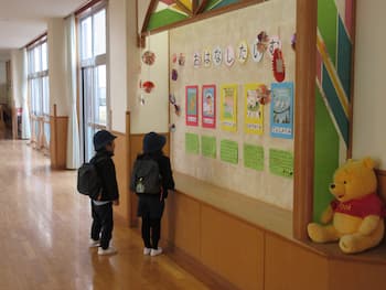 お話タイムの日は、自分で選んで、好きな部屋に行ってお話を聴くことができます。自分で選んで自分で移動する・・・この経験が、2月の幼稚園中で行うごっこ遊びに繋がります!!